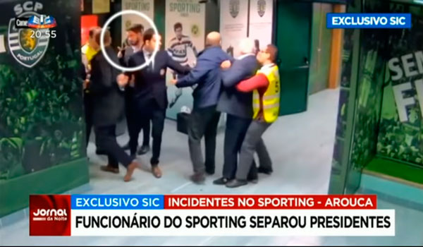 Portuqaliya çempionatı çərçivəsində keçirilən "Sportinq” - "Arouka” matçından sonra qalmaqal yaşanıb. Sportfm.az xəbər verir ki, Lissabon təmsilçisinin prezidenti Bruno De Karvalyo ilə rəqib komandanın prezidenti Karlos Pinha dalaşıb. Tərəflərin davasının görüntüləri artıq mediayada yayılıb. Bundan sonra isə Portuqaliya Futbol Federasiyası məsələ ilə bağlı araşdırmaya başlayıb.