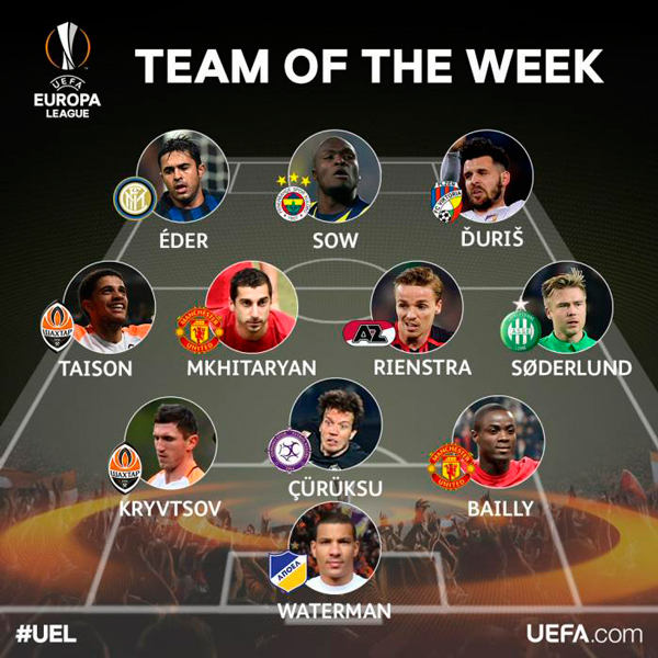 UEFA Avropa Liqasının qrup mərhələsinin 6-cı turu üçün rəmzi komandasını elan edib. Sportfm.az xəbər verir ki, rəmzi 11-likdə aşağıda adları qeyd olunan futbolçular yer alıb: